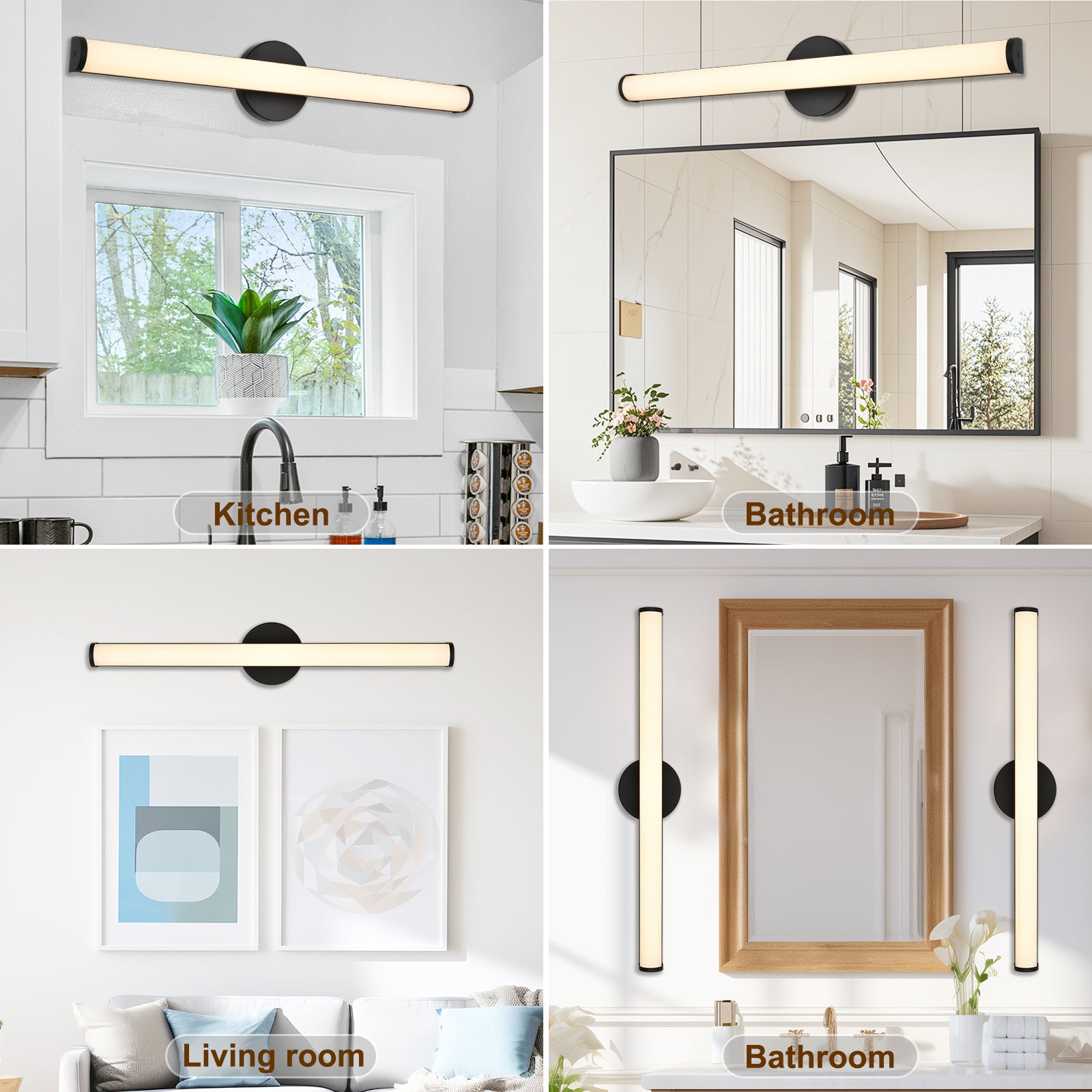 30-Inch Matte Black LED Vanity Light – 3000K Warm White, Frosted Acrylic Lampshade – Wall Mounted Bathroom Sconce for Mirror, Kitchen, Bedroom