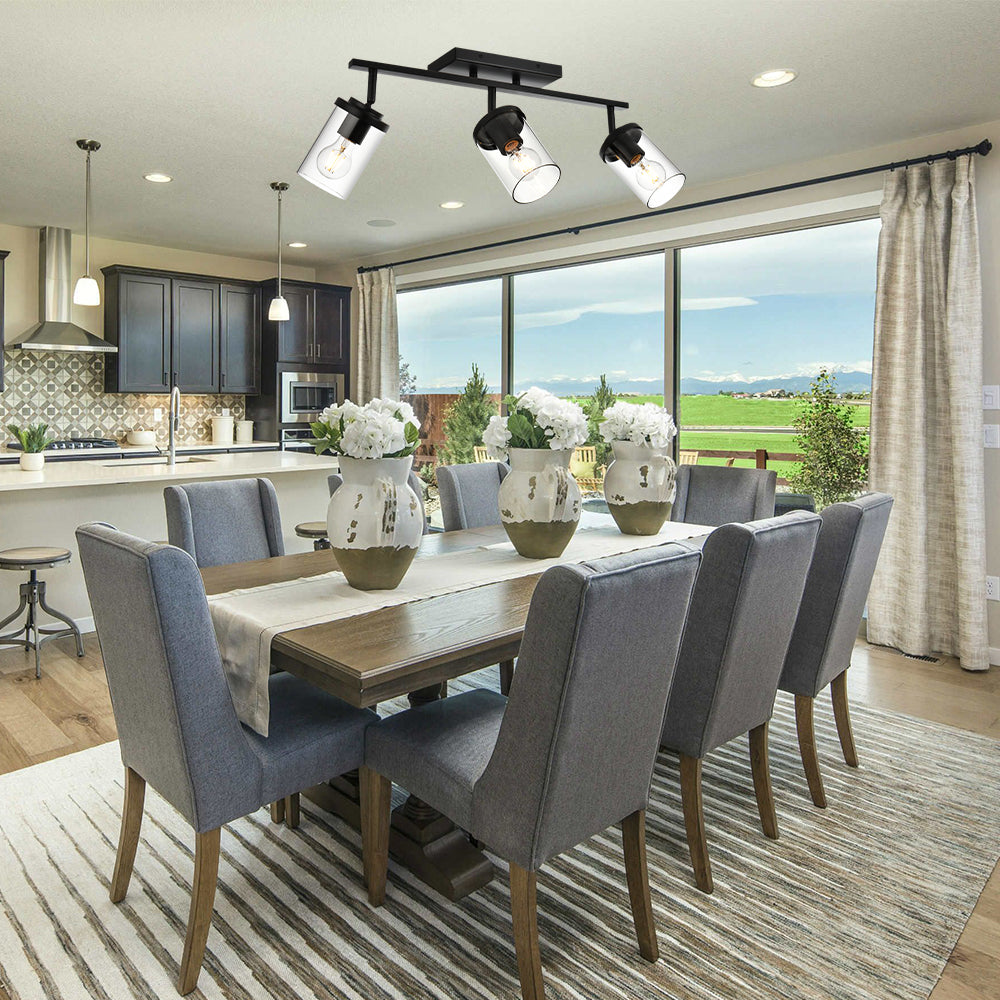 - Upgrade your space with this contemporary track lighting system, designed for flexible placement and warm, inviting light. Its clear glass lampshade diffuses brightness softly while showcasing the bulb’s glow, making it ideal for living rooms, kitchens, hallways, or vanity areas.