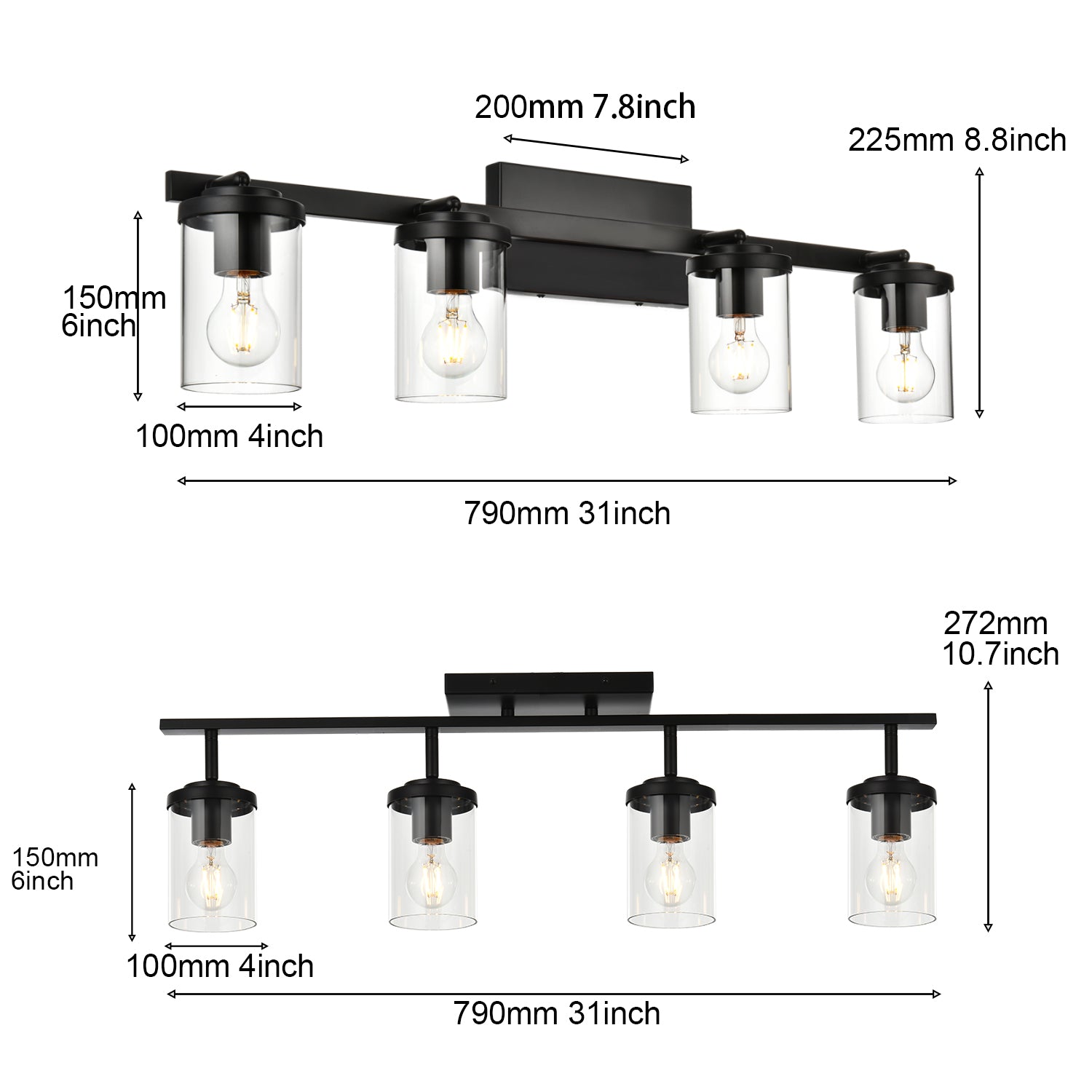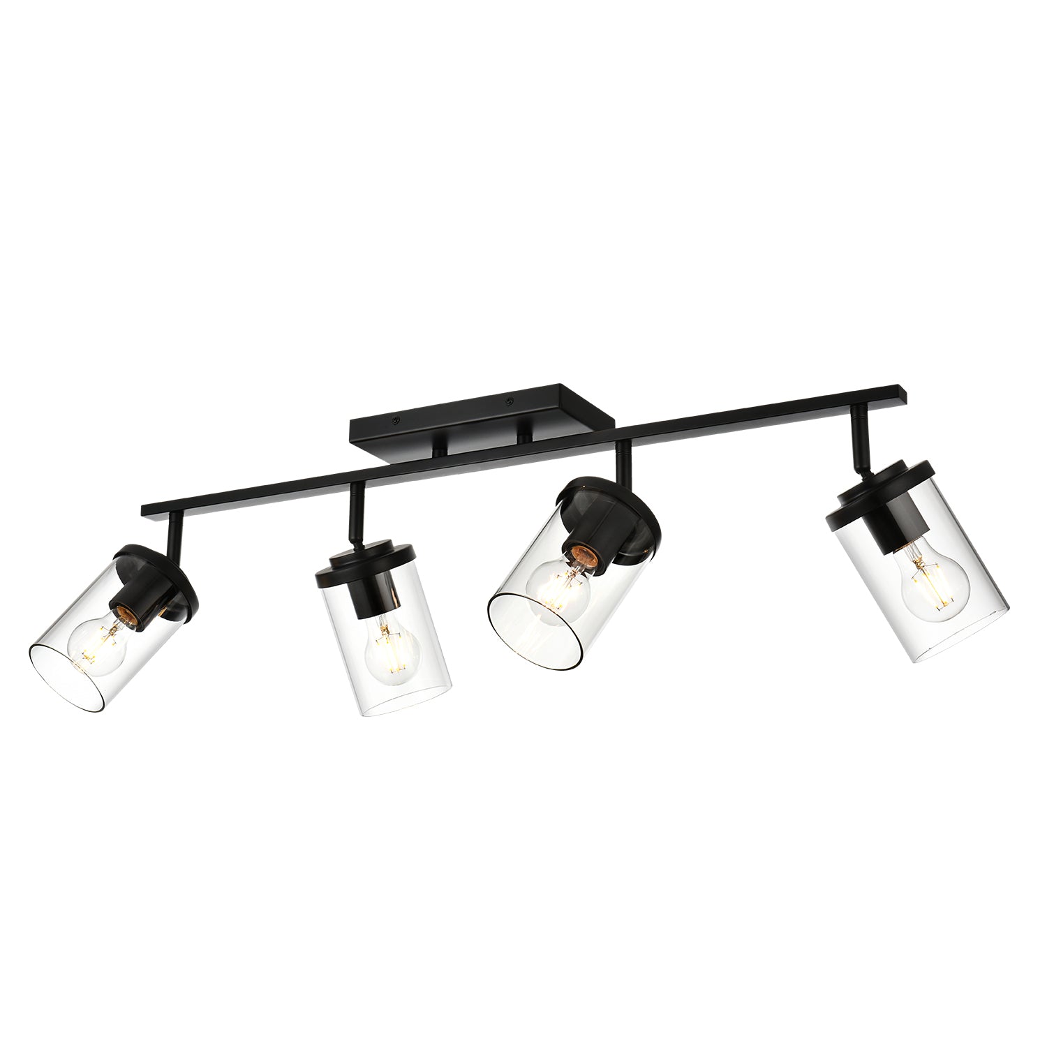 Black Adjustable Track Light Fixture – Modern 4-light Clear Glass Shade Vanity Track Lights with Flexible Heads Wall Mounted
