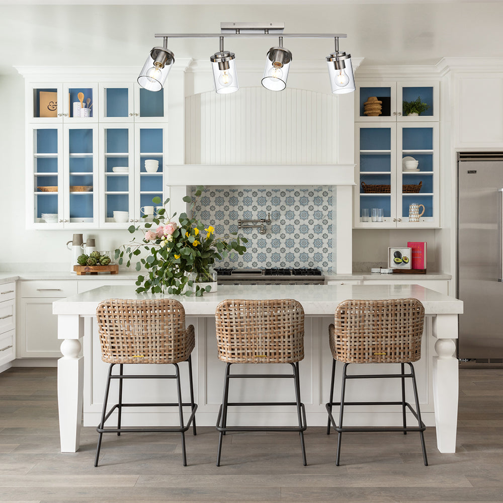 - Upgrade your space with this contemporary track lighting system, designed for flexible placement and warm, inviting light. Its clear glass lampshade diffuses brightness softly while showcasing the bulb’s glow, making it ideal for living rooms, kitchens, hallways, or vanity areas.