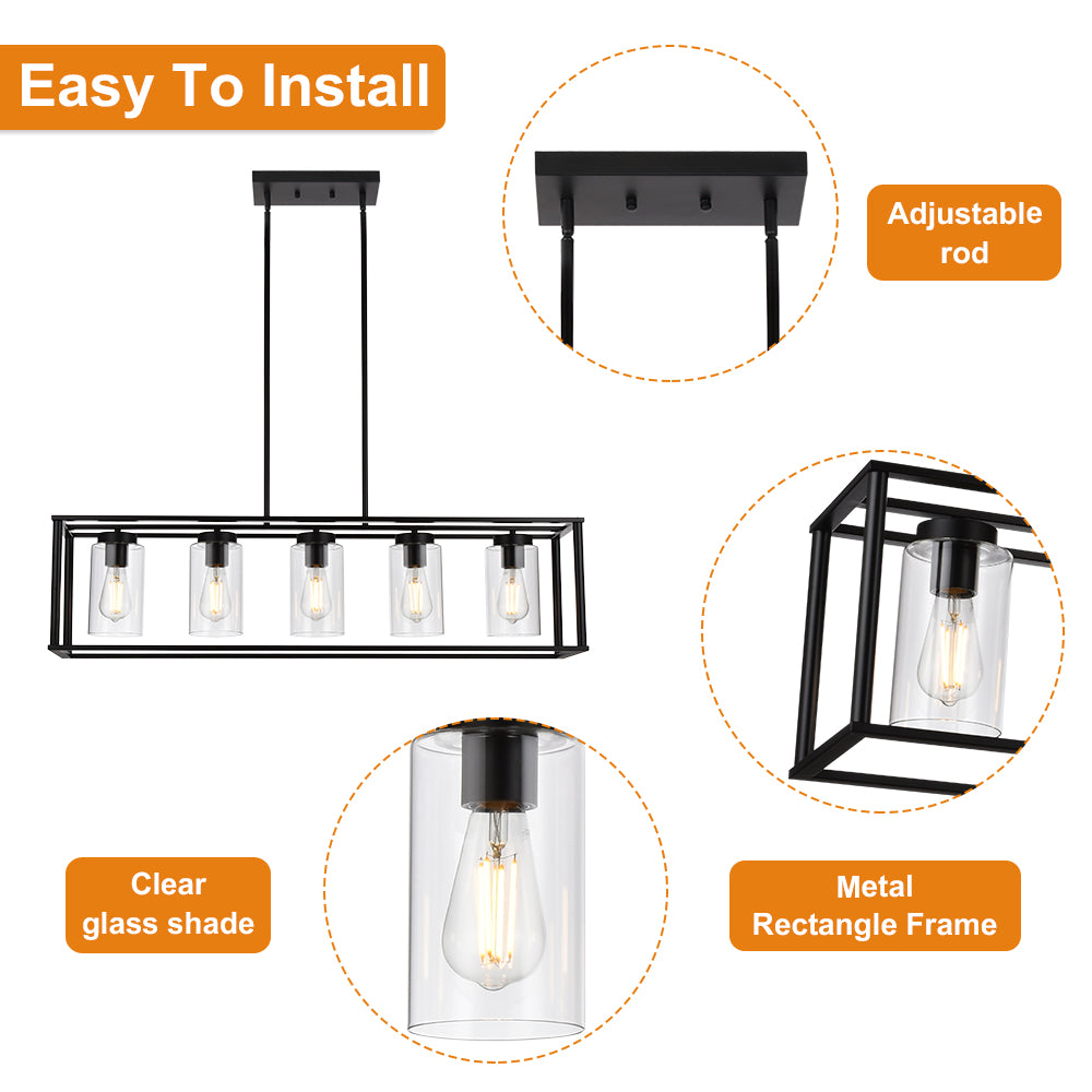 - ☀Contemporary Design: This simple linear island pendant lighting with clear glass shade, unique designed to illuminate the heart of your kitchen, dining room or farm styled places.
