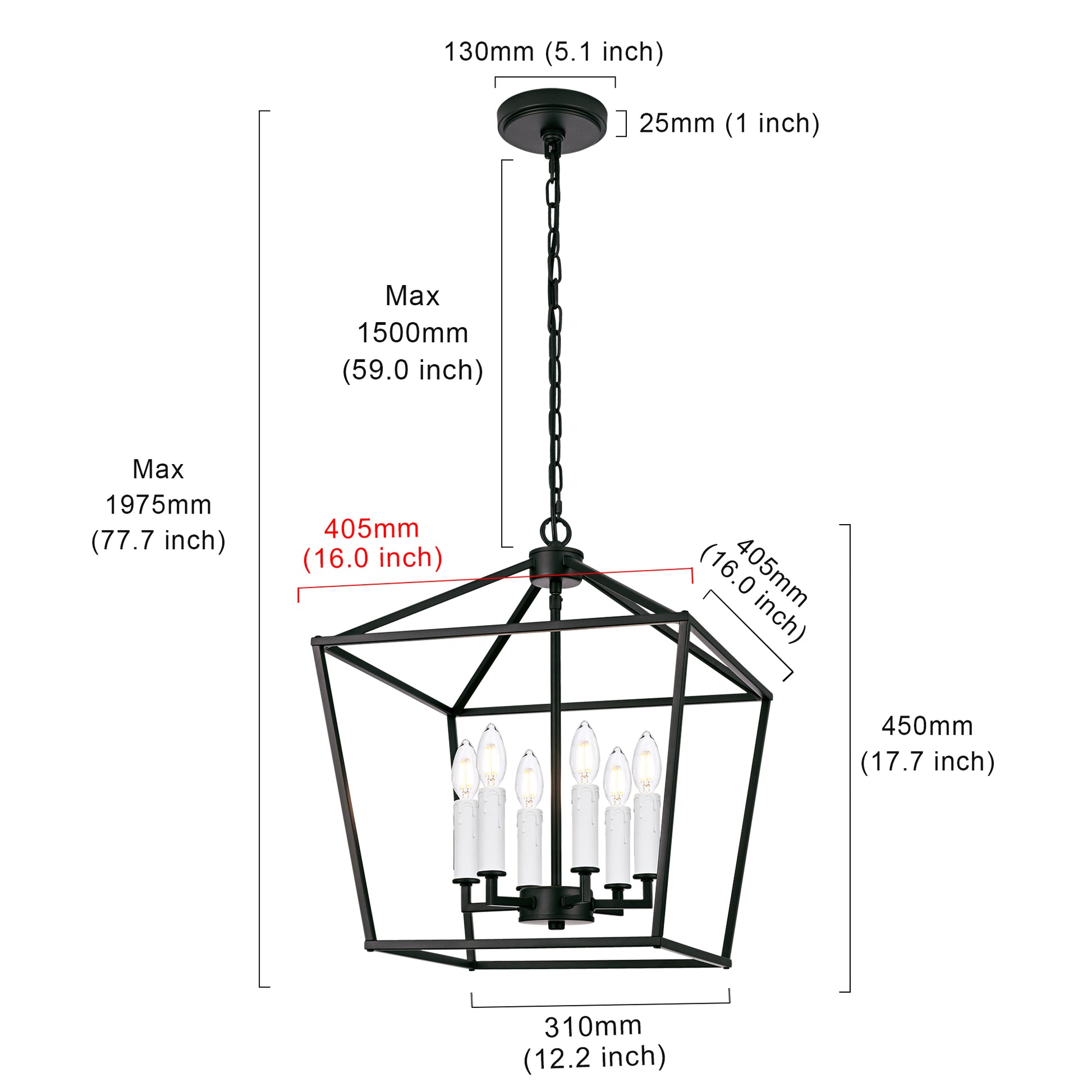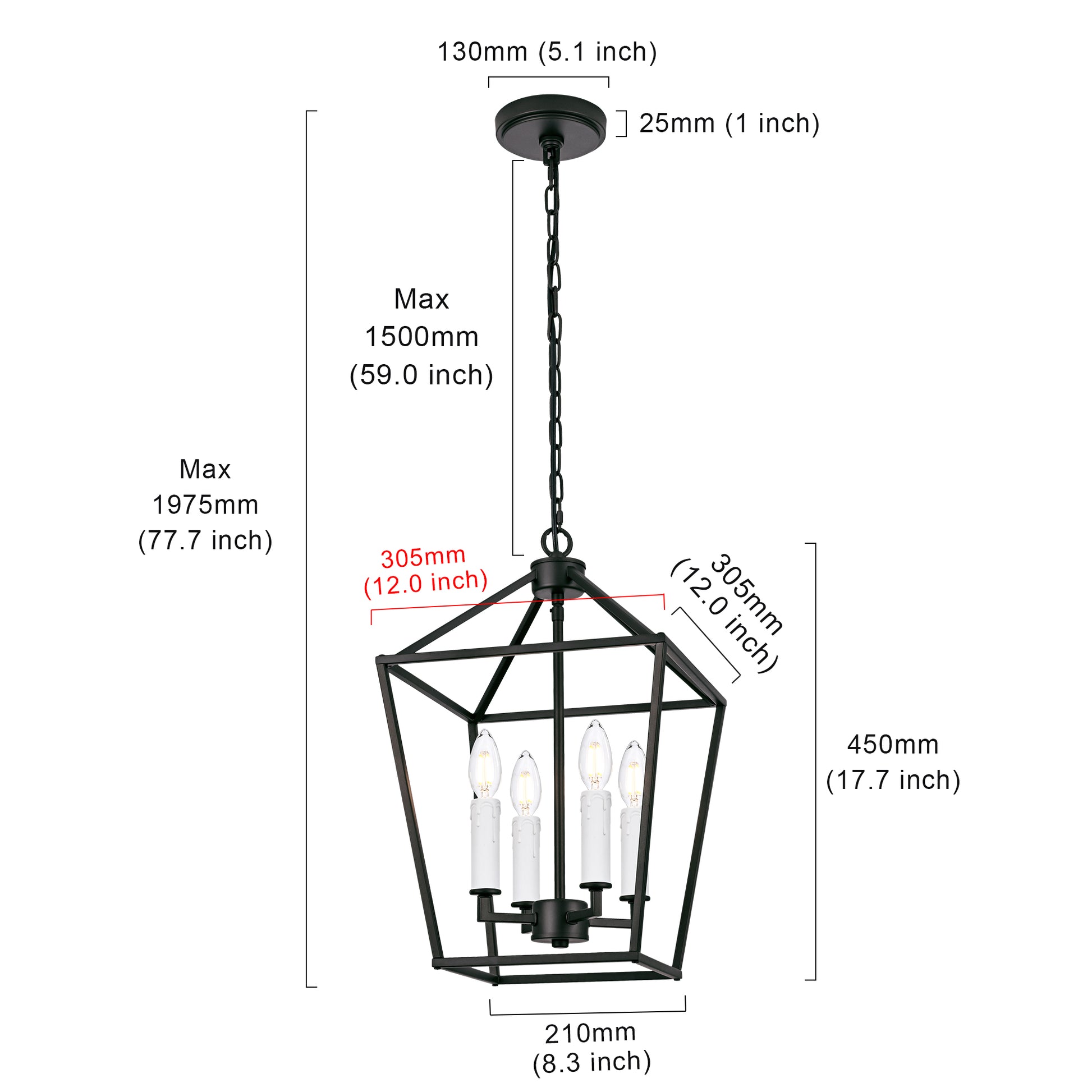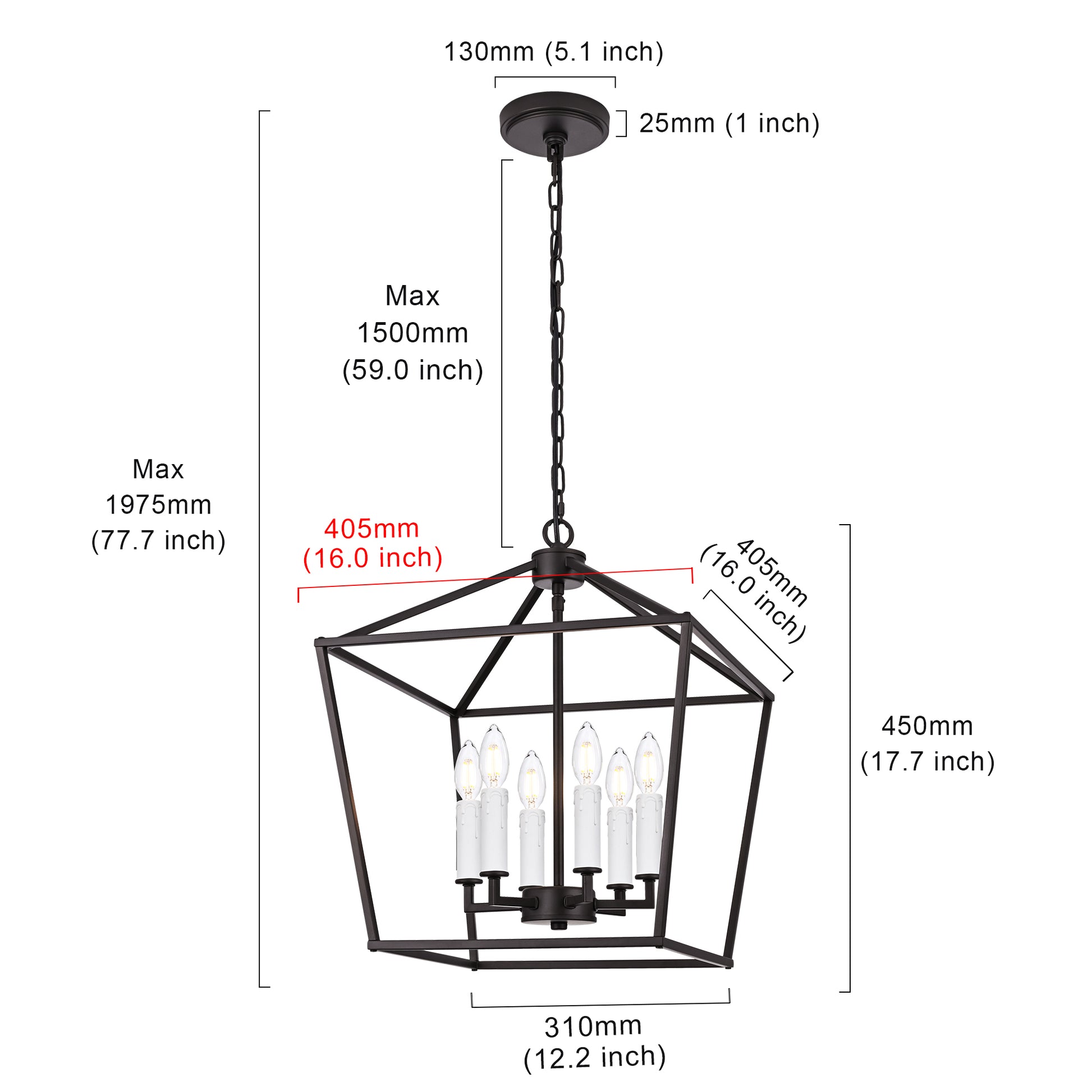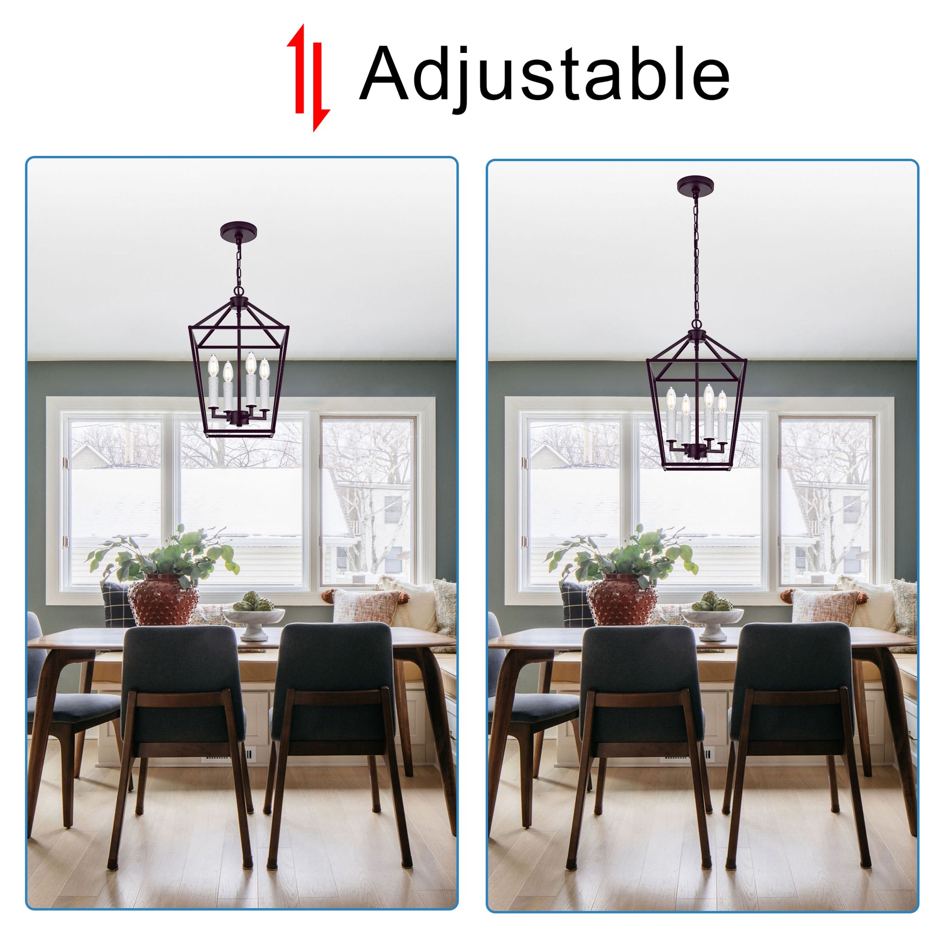 The hanging farmhouse chandelier includes a 59-inch adjustable chain,