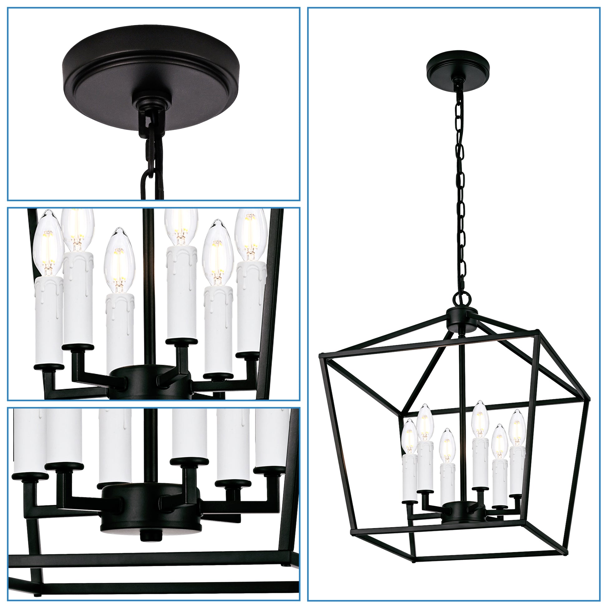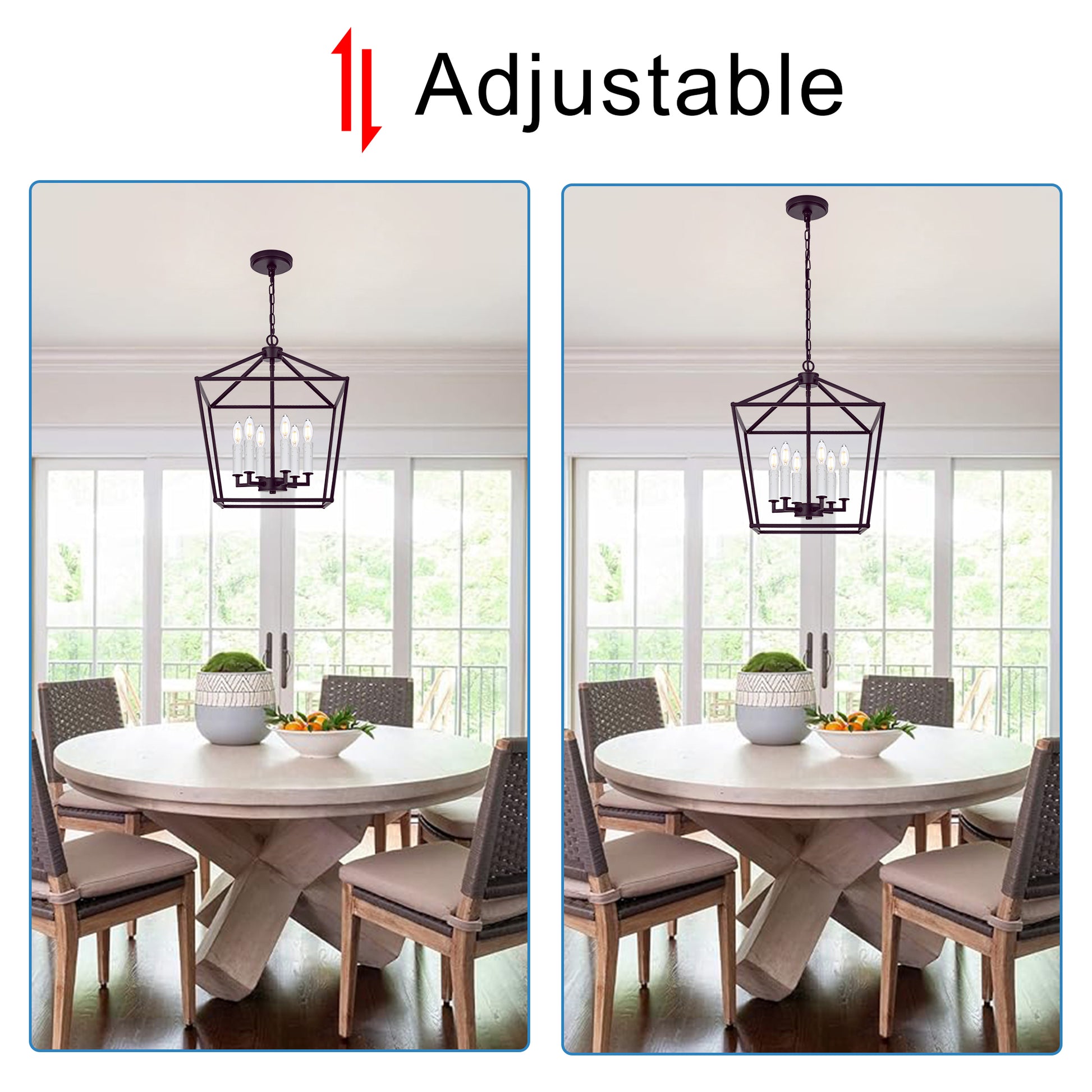 The farmhouse lantern chandelier combines rustic charm with modern elegance.