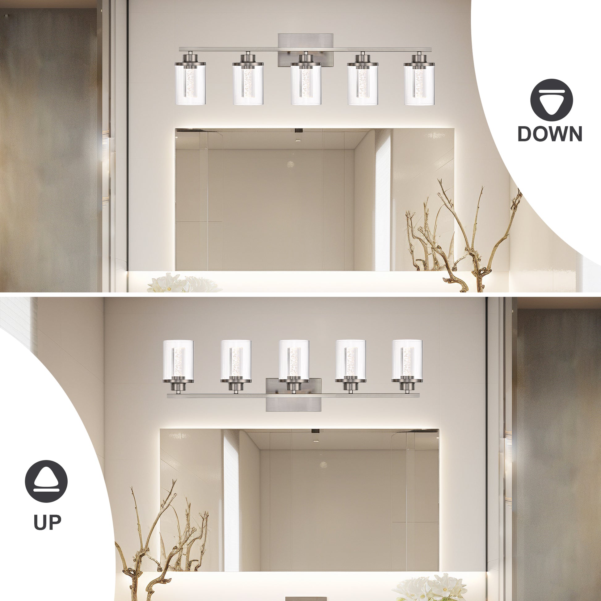 Modern Bubble Crystal 5-Light Vanity Light – 5CCT Adjustable LED Wall Sconce Cylindrical Clear Shade Wall Lights for Bathroom Glamour