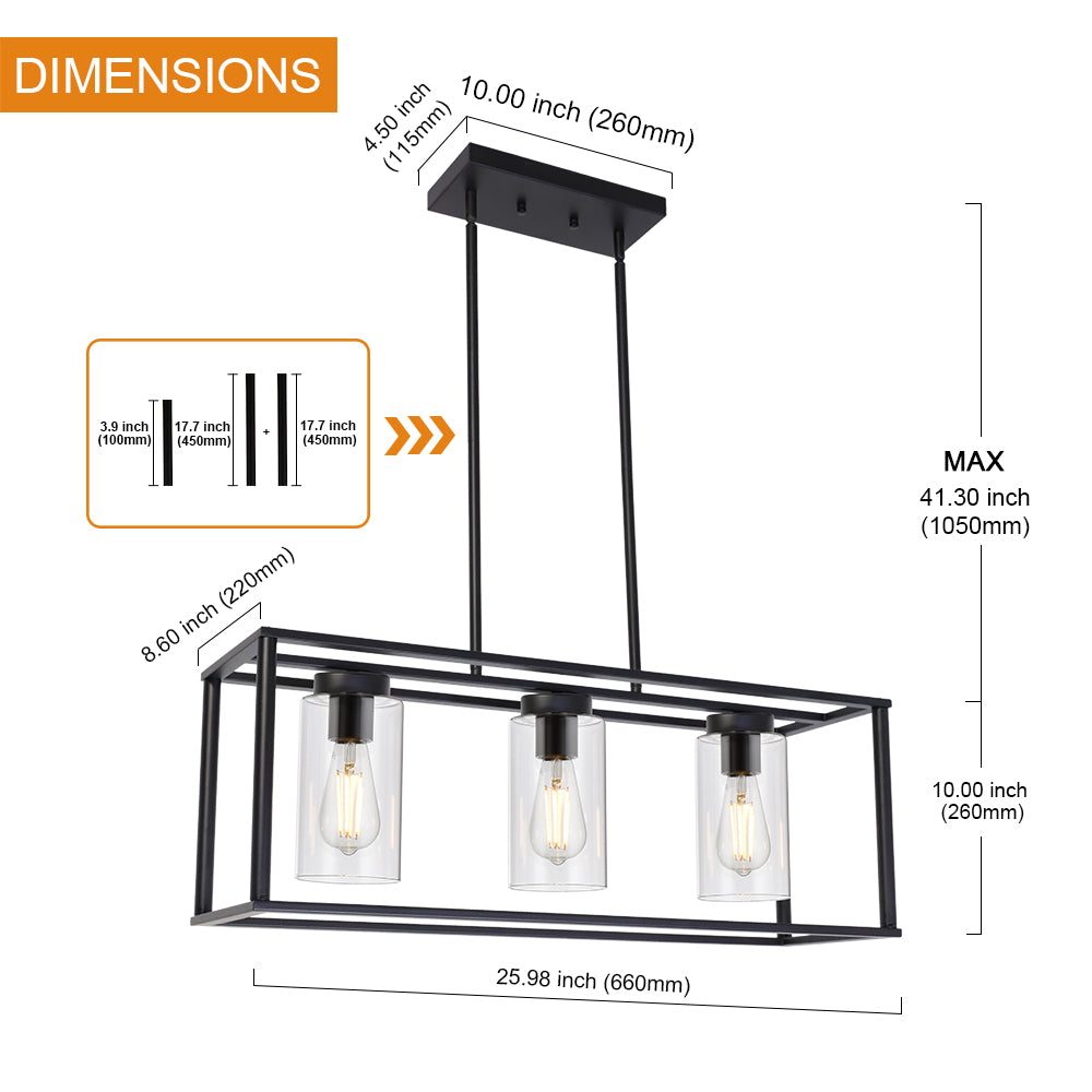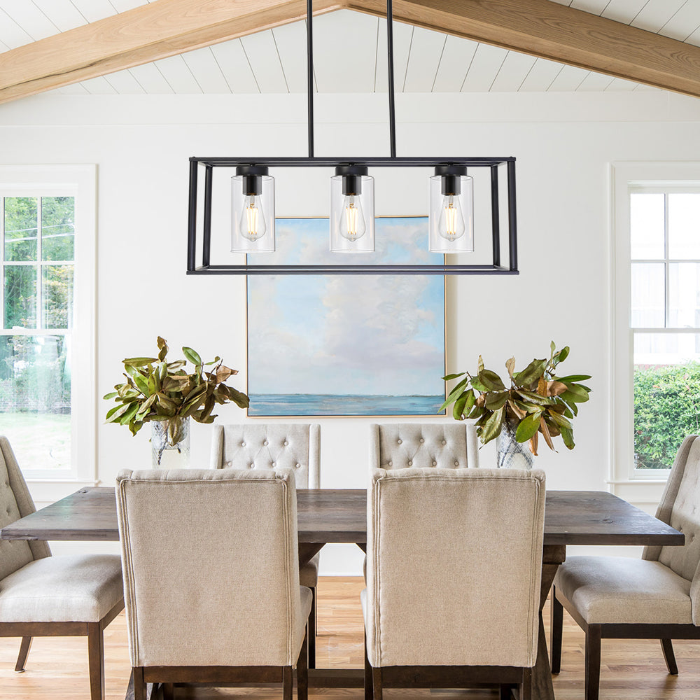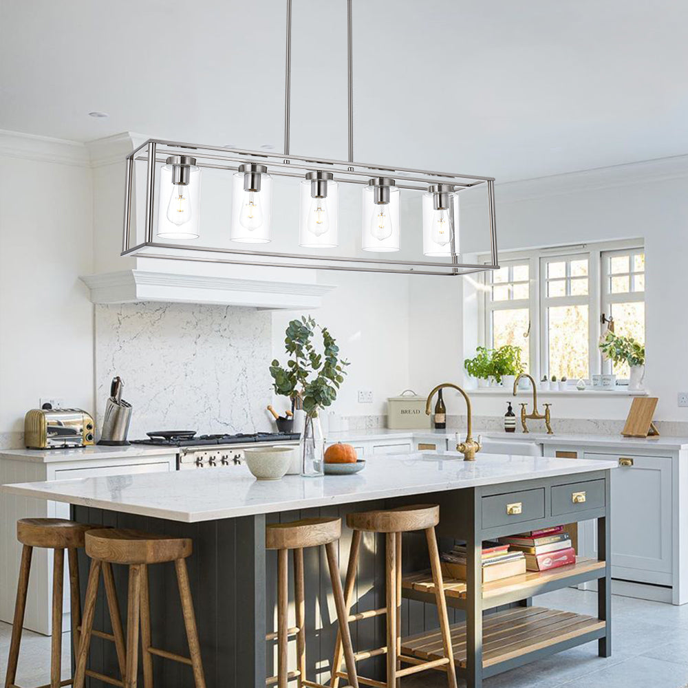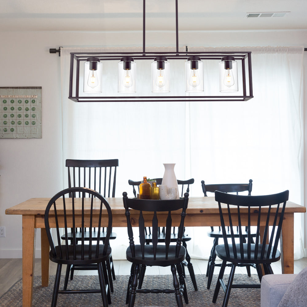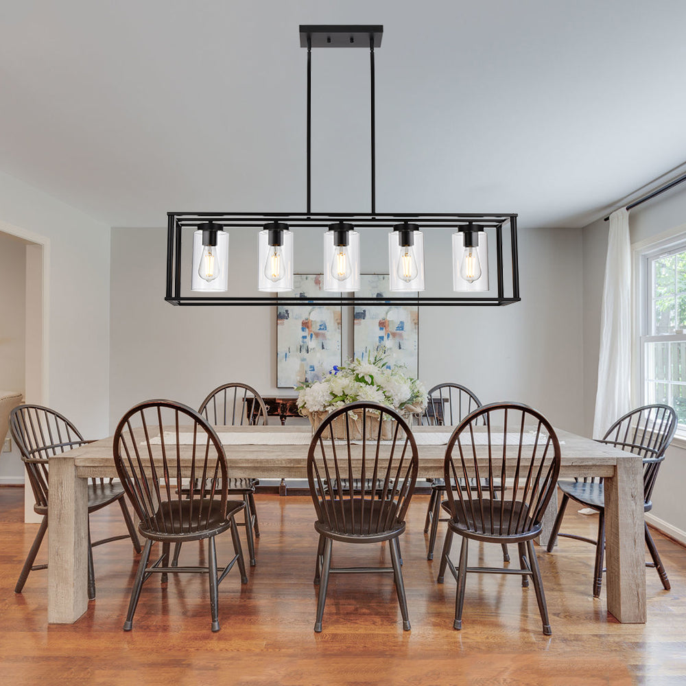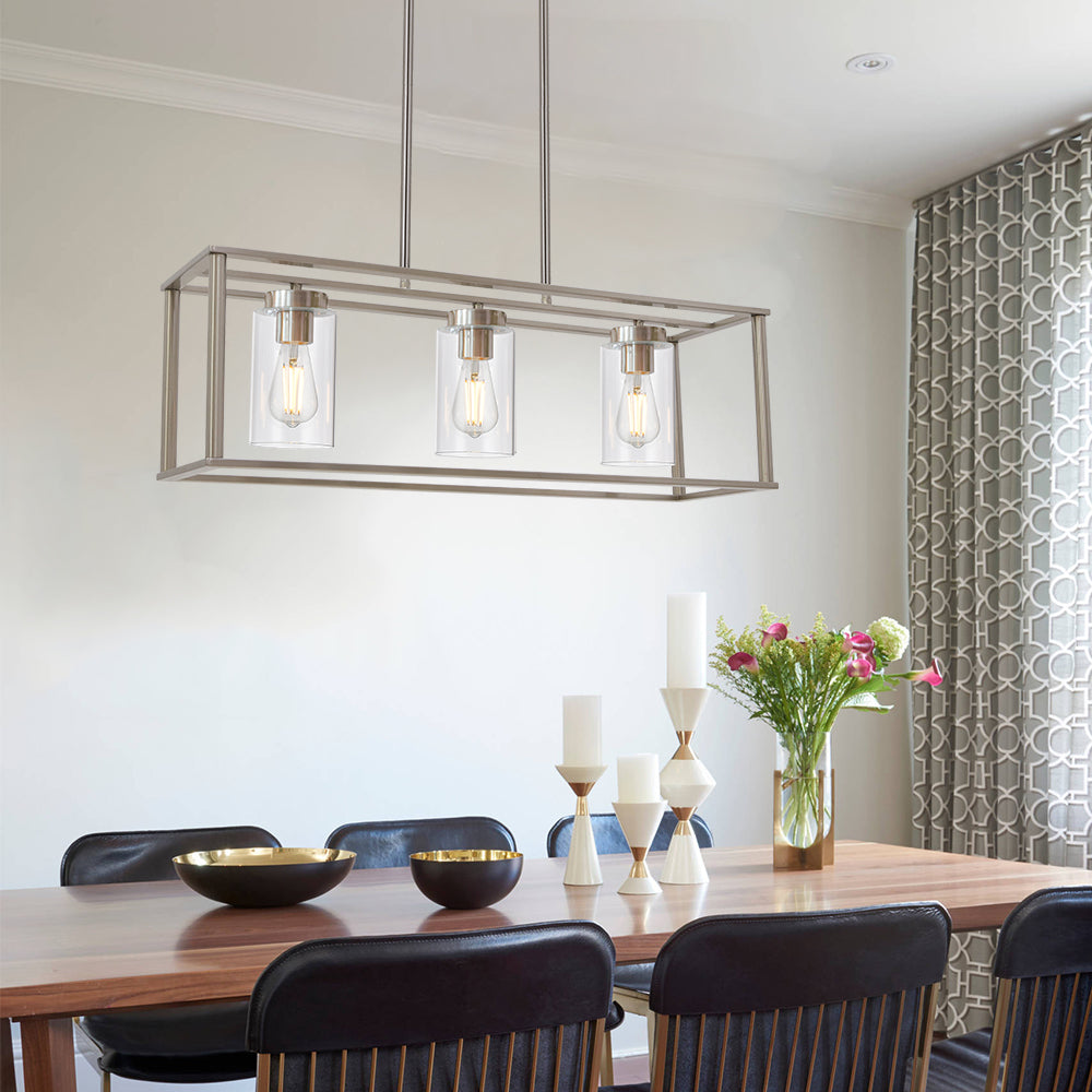 • Contemporary Linear Design: The sleek linear frame combined with clear glass shades provides optimal illumination without overwhelming your space. Perfect for hanging over rectangular dining tables or kitchen islands.